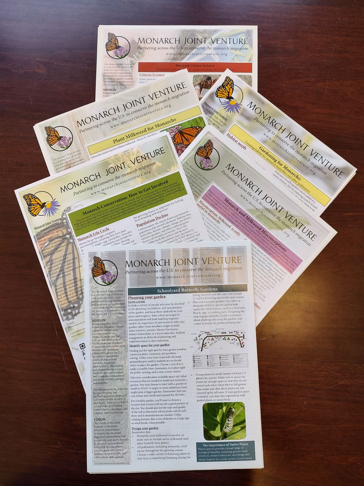 This collection of handouts has everything you need to educate others about monarch conservation and all the ways to get involved in their conservation efforts. Printed on high-quality semi-gloss paper.
