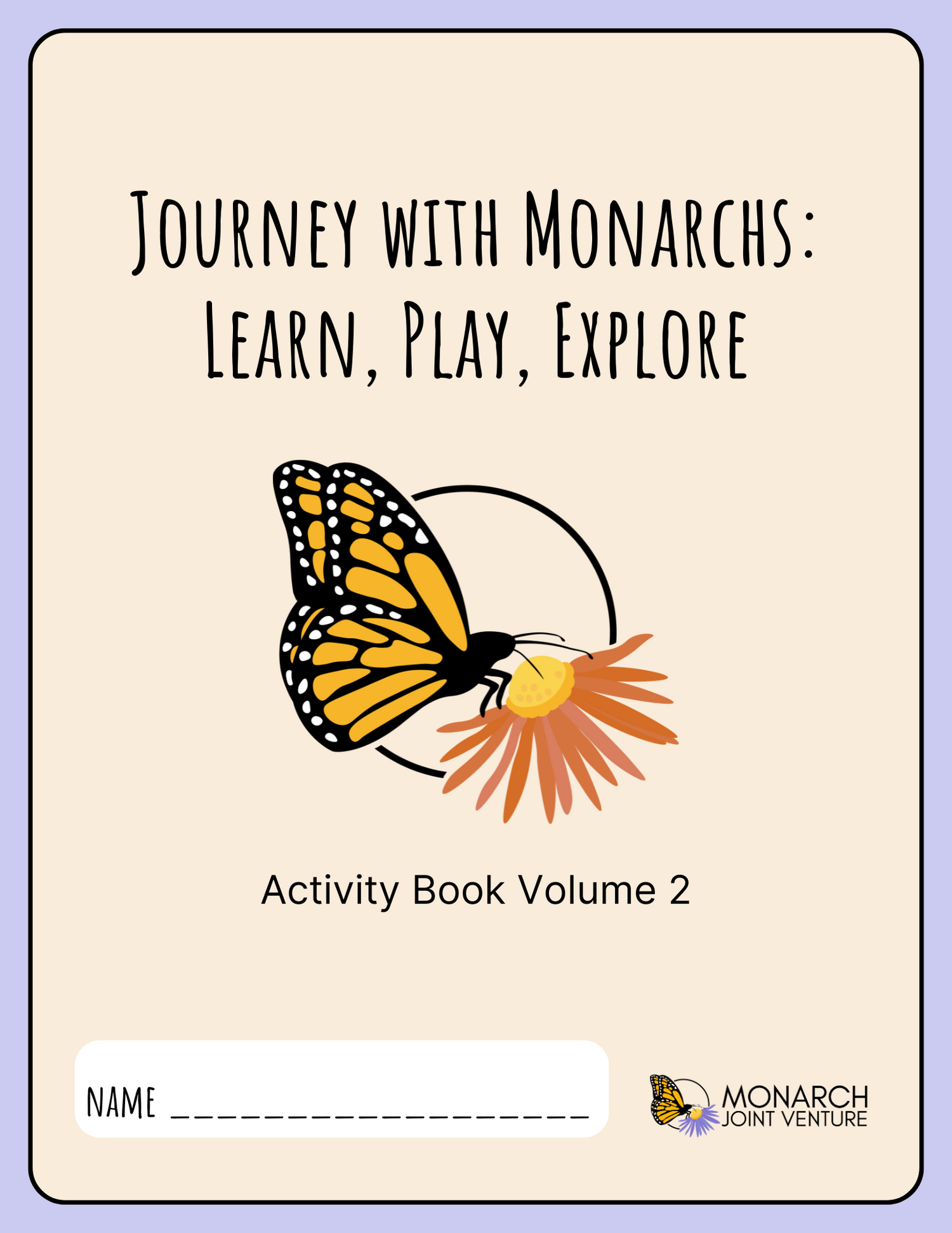 To enhance the learning experience, an accompanying Journey with Monarchs Grown-up Guide: Migration is available as a downloadable PDF with a QR code on your activity book. This guide provides background knowledge on migration and pollinator habitats for both adults and children, additional hands-on activities, a curated book list about monarchs and nature, tips for teaching outdoors, and ways to engage in community science. Whether you’re a parent, caregiver, or educator, this resource will help you confidently support young learners in exploring the natural world.