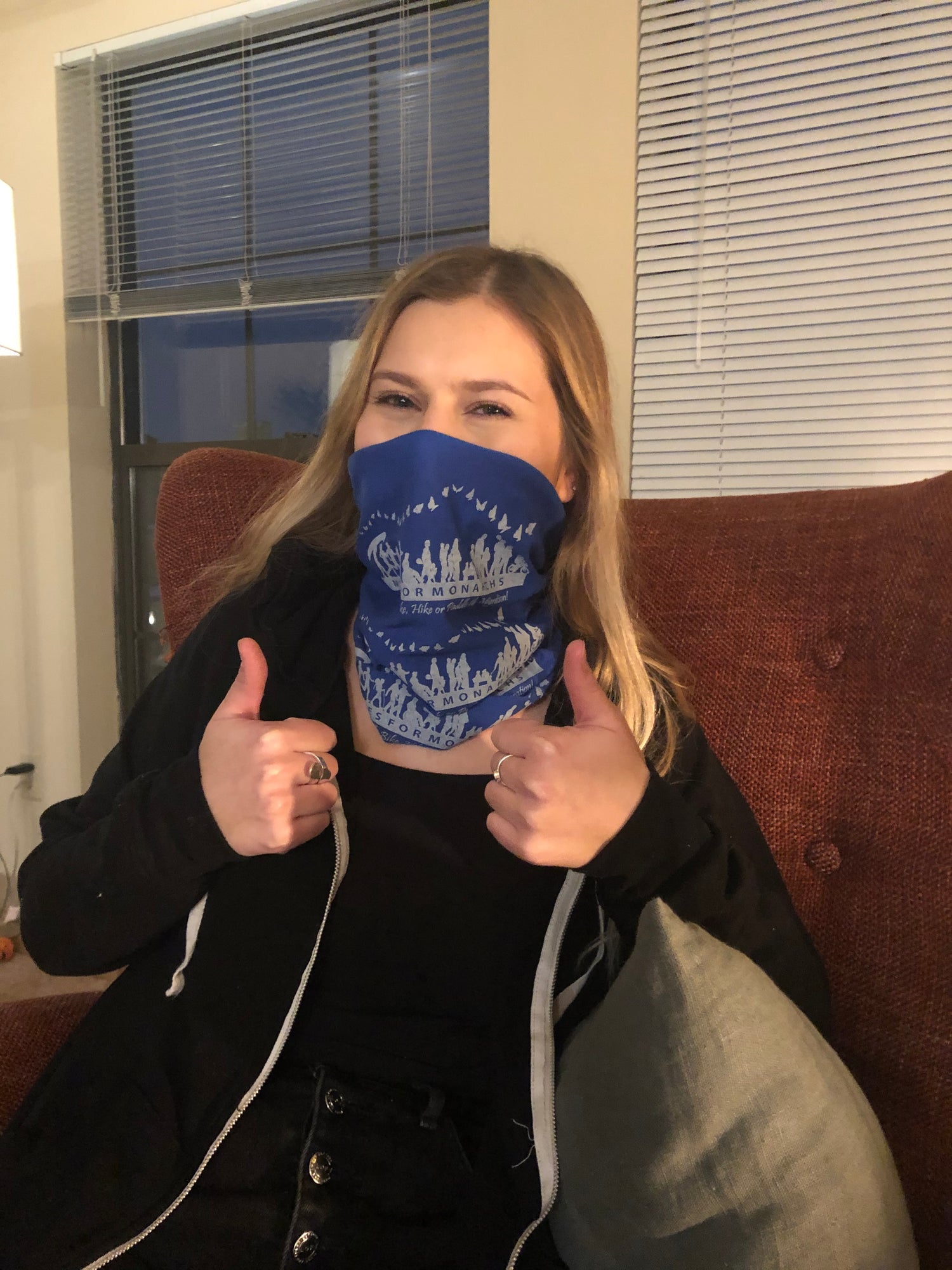 Royal blue in color. Featuring the miles for monarchs activity design.